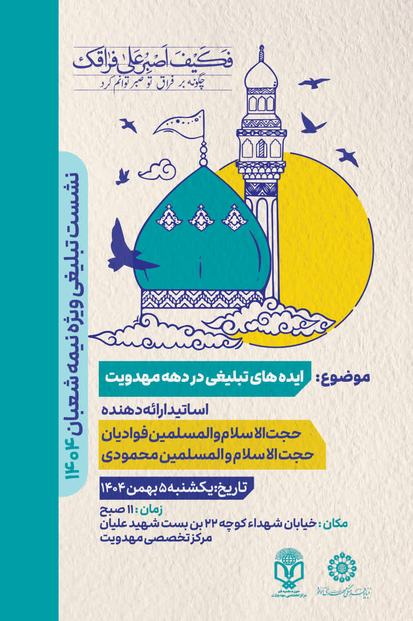 این نشست که با حضور مبلغین گرامی و علاقهمندان مباحث مهدوی برگزار میشود، به همت **مرکز تخصصی مهدویت** و با سخنرانی حجج اسلام **فوادیان و محمودی (زیدعزهما)** برگزار میگردد.